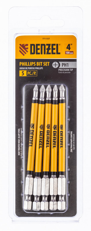 Набор бит T20x100 мм Denzel включает в себя 5 насадок с хвостовиками 1/4 дюйма из стали S2 для работы с шуруповертами. Шлиц в форме звезды служит для быстрого монтажа и демонтажа винтов при сборке бытовой техники и электроприборов. Набор универсален и подходит как для бытового, так и для профессионального применения. Благодаря конструктивной особенности лучи «звезды» надежно сцепляются с крепежом, нагрузка равномерно распределяется на все грани, это снижает риск соскальзывания биты и обеспечивает высокую точность работ.ПреимуществаДолговечность и надежность — биты сделаны из японской легированной стали S2 твердостью 54-58 HRC, что повышает их износостойкость и увеличивает срок службы.Высокое качество — точное исполнение шлица и максимальный контроль качества на производстве в Тайване позволяют добиться выверенности каждой биты и предотвратить проскальзывание рабочей части в головке крепежа.Удобная работа — намагниченный шлиц позволяет направлять шуруповерт с насаженным крепежом одной рукой, а другой придерживать закрепляемую деталь.Антикоррозионные свойства — защитное никелированное покрытие продлевает срок службы насадок.Каждая бита защищена от подделок — об этом свидетельствует цветное кольцо с логотипом ТМ Denzel.Удобное хранение — оснастка поставляется в жестком блистере с европодвесом.Большой запас — набора из 5 штук достаточно для снабжения бригады работников.