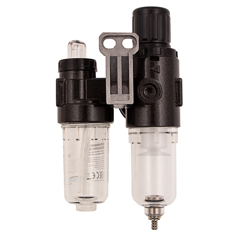 Блок подготовки воздуха Denzel FLR1500 57469 с фильтром-влагоотделителем, регулятором и лубрикатором, с присоединительным размером 1/4 дюйма, имеет пропускную способность 1500 л/мин, работает под давлением до 10 бар и позволяет увеличить срок службы пневматического инструмента.Регулятор со встроенным манометром помогает контролировать и поддерживать заданное давление для корректной работы пневмоинструмента. Фильтр предназначен для очистки сжатого воздуха от конденсата и посторонних частиц размером от 40 мкм. Лубрикатор служит для подачи масла к пневмоинструменту. Блок используется совместно с компрессорами на строительной площадке, в мастерской, на производстве, в автосервисе, пригодится также в гараже.ПреимуществаВместительная емкость лубрикатора — объем масла 25 мл позволяет снизить частоту заправок.Регулировка количества подаваемого масла — можно установить оптимальный режим в зависимости от подключенного инструмента.Простой монтаж — отверстия в корпусе блока позволяют закрепить его на стене.Качественный фильтрующий элемент — он изготовлен из полиэстера и отличается повышенной пылеемкостью, поэтому не нуждается в частой замене.Удобное обслуживание — корпус фильтра и лубрикатора из прозрачного пластика позволяет отслеживать степень загрязнения и количество масла.Сливной клапан — предусмотрен автоматический сброс скопившегося конденсата без участия пользователя.Гарантия 3 года — качество блока подготовки воздуха подтверждено производителем.