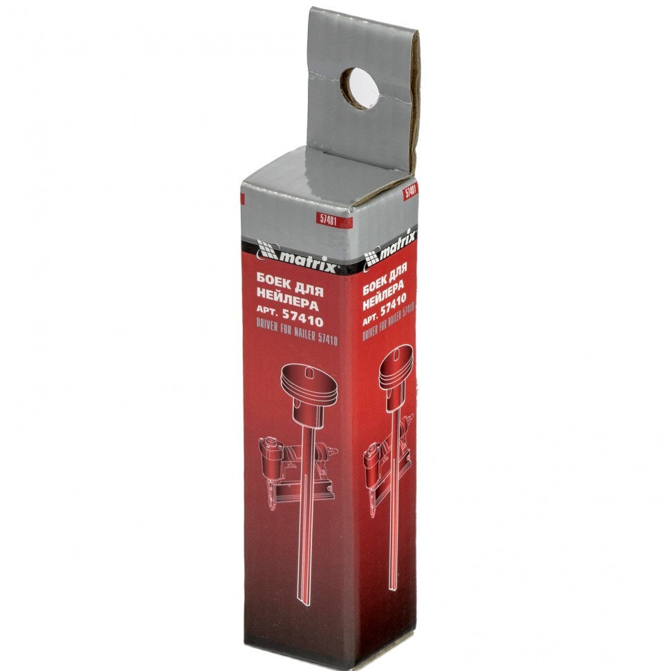 Боек Matrix 57481 — ударный элемент для пневматического нейлера 57410. Выдерживает давление до 10 МПа и имеет уплотнительное кольцо, обеспечивающее полную герметичность конструкции.ПреимуществаПрочность и высокий ресурс — стальной боек твердостью не менее 45 HRC выдерживает ударные нагрузки, устойчив к коррозии и механическим повреждениям.Эффективная работа — идеальная геометрия бойка исключает заклинивание и поломку гвоздей.Вес 340 г — боек не утяжеляет конструкцию нейлера, что позволяет долго работать без усталости.
