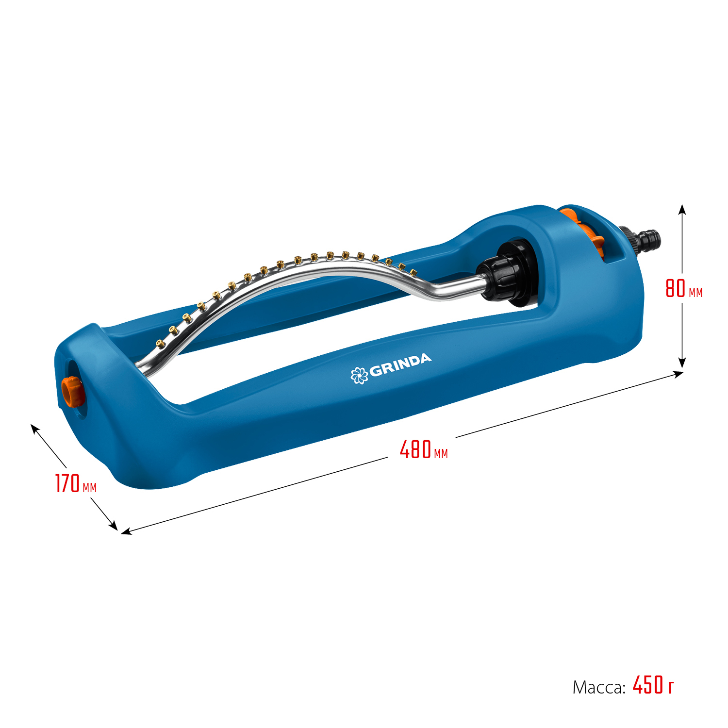 - -18 латунных форсунок обеспечивают равномерный, настраиваемый полив без образования луж.,