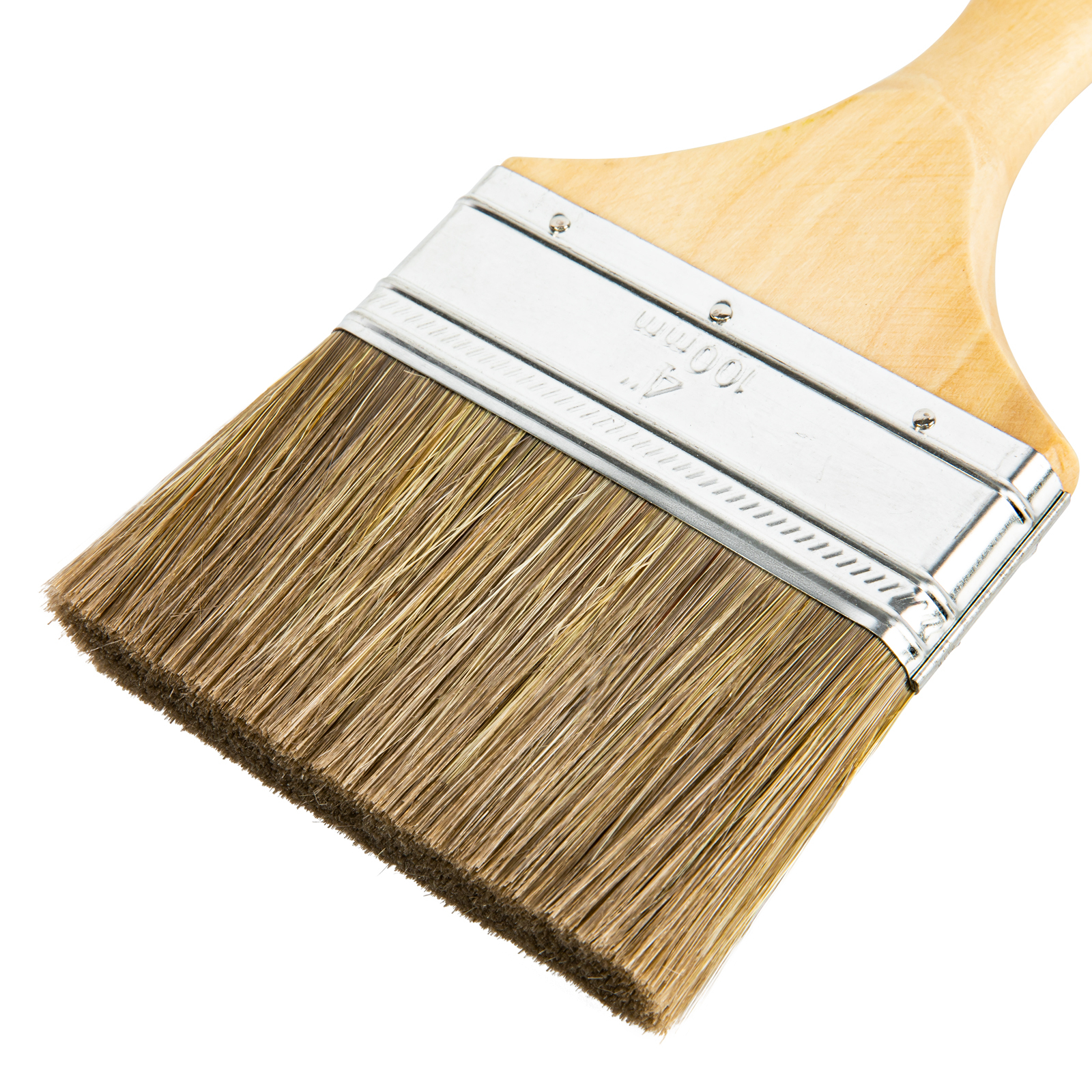 Плоская кисть MTX «Евро» 83082 шириной 4", с деревянной ручкой, имеет смешанную щетину и оптимальна для нанесения средств защиты древесины (пропитки, грунтовки, антисептиков, морилки). Сочетает все преимущества искусственной и натуральной щетины благодаря оптимальной комбинации натуральных и искусственных волокон. Обладает высокими краскообменными качествами: благодаря натуральной щетине в составе кисть хорошо впитывает и отдает краску. Инструмент подходит для профессионального использования.ПреимуществаВысокий ресурс — искусственный ворс не разбухает и не деформируется под воздействием воды, а натуральная щетина обеспечивает хорошую отдачу краски и устойчивость к любым типам ЛКМ.Защита от разрушения — на металлический бандаж нанесено антикоррозийное, а на деревянную рукоятку — матовое лаковое покрытие.Комфортная эксплуатация — деревянная рукоятка не скользит в руке во время работы.Эргономичность — рукоятка удобно ложится в руку, обеспечивая комфорт во время длительной работы.Ширина 100 мм — кисть удобна для обработки участков небольшой площади.Продуманное хранение — в рукоятке предусмотрено отверстие для подвешивания кисти на крючок или гвоздь.