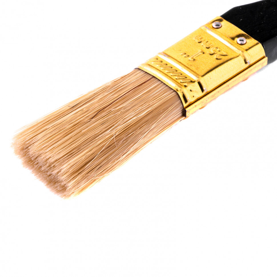 Плоская кисть «Профи» MTX 83150 шириной 1 дюйм, с натуральной щетиной и деревянной ручкой, рассчитана на профессиональное выполнение малярных работ. Натуральная щетина с увеличенной плотностью набивки подходит для нанесения различных типов ЛКМ, в том числе содержащих растворители.ПреимуществаШирина 25 мм — кисть оптимальна для окрашивания тонких труб, решеток, плинтусов и других узких поверхностей.Высокий ресурс — кисть премиум качества легко выдерживает интенсивное и многократное использование.Равномерное окрашивание — щетина двойной выварки не содержит посторонних примесей, а расщепленные кончики обеспечивают высокий показатель впитываемости и отдачи краски.Простой уход — кисть можно мыть, т.к. антикоррозийное покрытие защищает бандаж от разрушения.Комфортная работа — рукоятка из отборной древесины отшлифована и покрыта лаком, поэтому удобно лежит в руке.Практичное хранение — в рукоятке имеется отверстие для подвешивания на крючок.