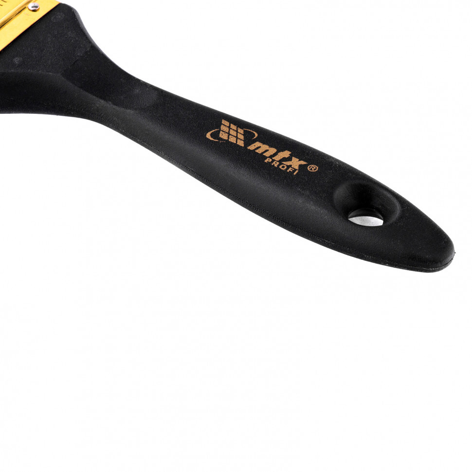 Плоская кисть «Профи» MTX 83151 шириной 1,5 дюйма, с натуральной щетиной и деревянной ручкой, рассчитана на профессиональное выполнение малярных работ. Натуральная щетина с увеличенной плотностью набивки подходит для нанесения различных типов ЛКМ, в том числе содержащих растворители.ПреимуществаШирина 38 мм — кисть оптимальна для окрашивания тонких труб, решеток, плинтусов и других узких поверхностей.Высокий ресурс — кисть премиум качества легко выдерживает интенсивное и многократное использование.Равномерное окрашивание — щетина двойной выварки не содержит посторонних примесей, а расщепленные кончики обеспечивают высокий показатель впитываемости и отдачи краски.Простой уход — кисть можно мыть, т.к. антикоррозийное покрытие защищает бандаж от разрушения.Комфортная работа — рукоятка из отборной древесины отшлифована и покрыта лаком, поэтому удобно лежит в руке.Практичное хранение — в рукоятке имеется отверстие для подвешивания на крючок.