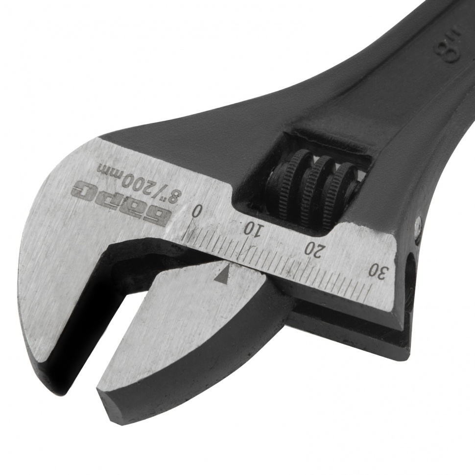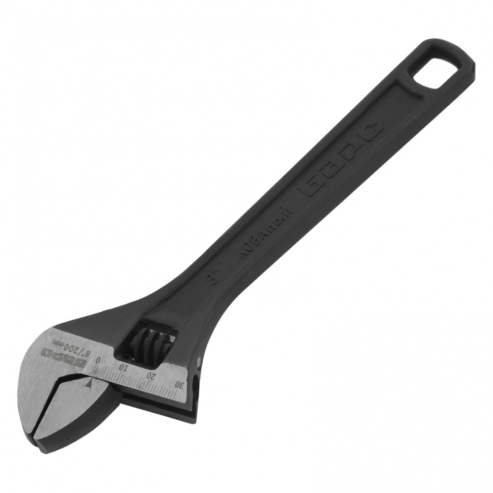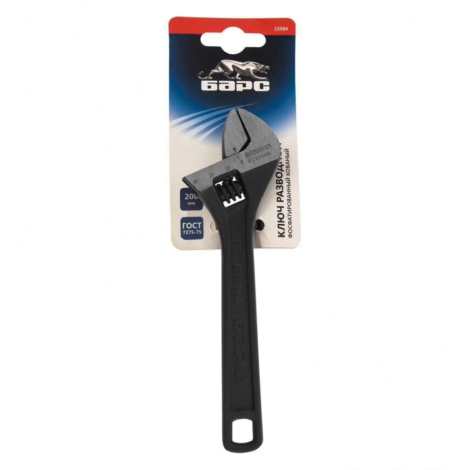 Разводной ключ Барс 15504 длиной 200 мм используется для монтажа и демонтажа крепежных элементов. Заменяет собой целый комплект обычных гаечных ключей. Губки можно разводить на точно заданное расстояние, что позволяет захватывать детали различного размера. Разводной ключ пригодится для проведения слесарных, сантехнических, ремонтных работ.ПреимуществаПрочность — ключ изготовлен из высококачественной хромованадиевой стали.Коррозионная стойкость — фосфатное покрытие защищает червячный винтовой механизм от воздействия влаги.Точность выполняемых работ — на губках имеется градуировка и точечная риска.Эргономичность — обливная рукоятка удобно ложится в руку и имеет отверстие для подвесного хранения.