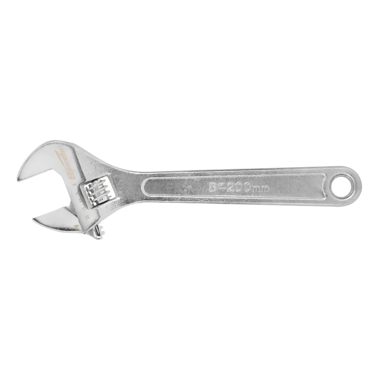 Хромированный разводной ключ Sparta 155255 длиной 200 мм — инструмент для выполнения мелких ремонтных работ. Регулировка размера зева позволяет работать с различными крепежами, в том числе нестандартных размеров. Ключ пригодится слесарям, сантехникам, автомеханикам и начинающим мастерам.ПреимуществаДолгий срок службы — ключ выполнен из инструментальной углеродистой стали 45 и прошел селективную закалку.Антикоррозийная защита — хромовое покрытие предохраняет червячный винтовой механизм от воздействия влаги.Точный захват деталей — на ключ нанесена градуировка, а на подвижную губку — точечная риска.Малый вес 0,218 кг — длительная работа не вызывает дискомфорт.