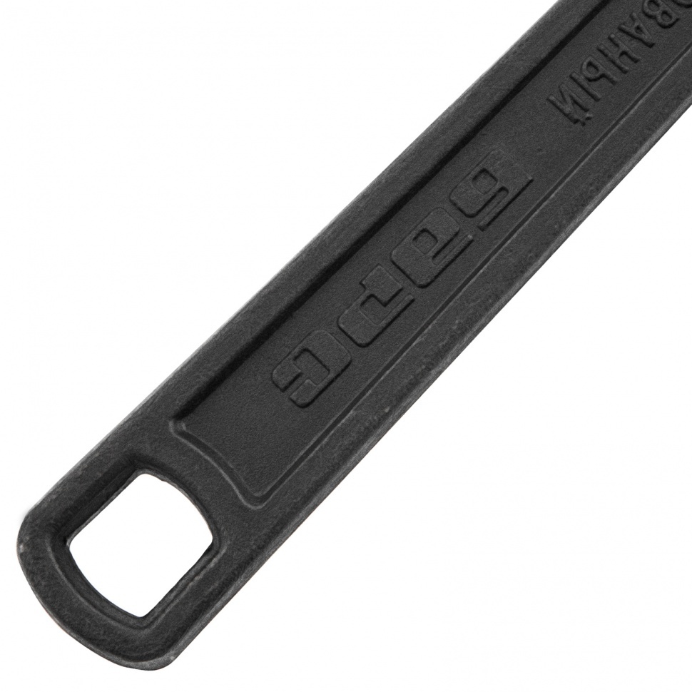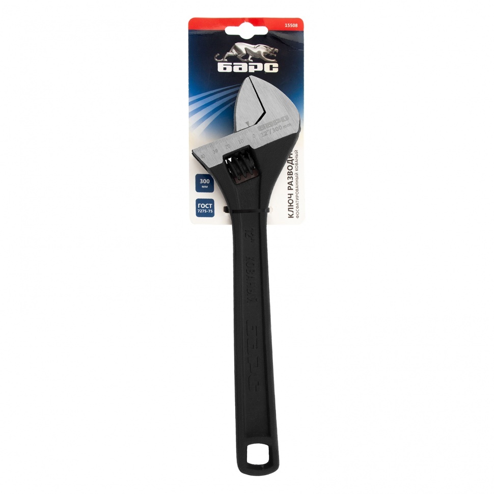 Разводной ключ Барс 15508 длиной 300 мм используется для монтажа и демонтажа крепежных элементов. Заменяет собой целый комплект обычных гаечных ключей. Губки можно разводить на точно заданное расстояние, что позволяет захватывать детали различного размера. Разводной ключ пригодится для проведения слесарных, сантехнических, ремонтных работ.ПреимуществаПрочность — ключ изготовлен из высококачественной хромованадиевой стали.Коррозионная стойкость — фосфатное покрытие защищает червячный винтовой механизм от воздействия влаги.Точность выполняемых работ — на губках имеется градуировка и точечная риска.Эргономичность — обливная рукоятка удобно ложится в руку и имеет отверстие для подвесного хранения.