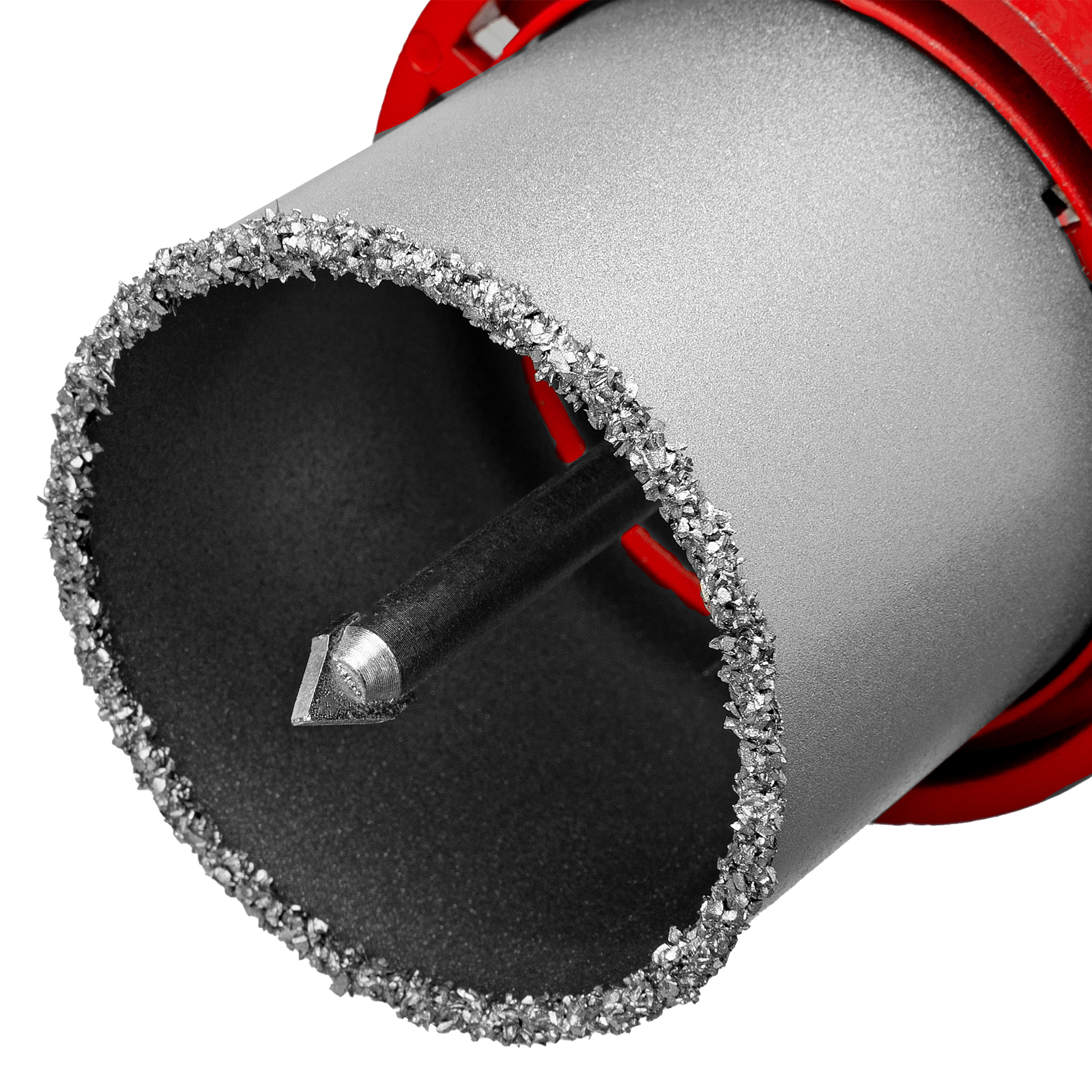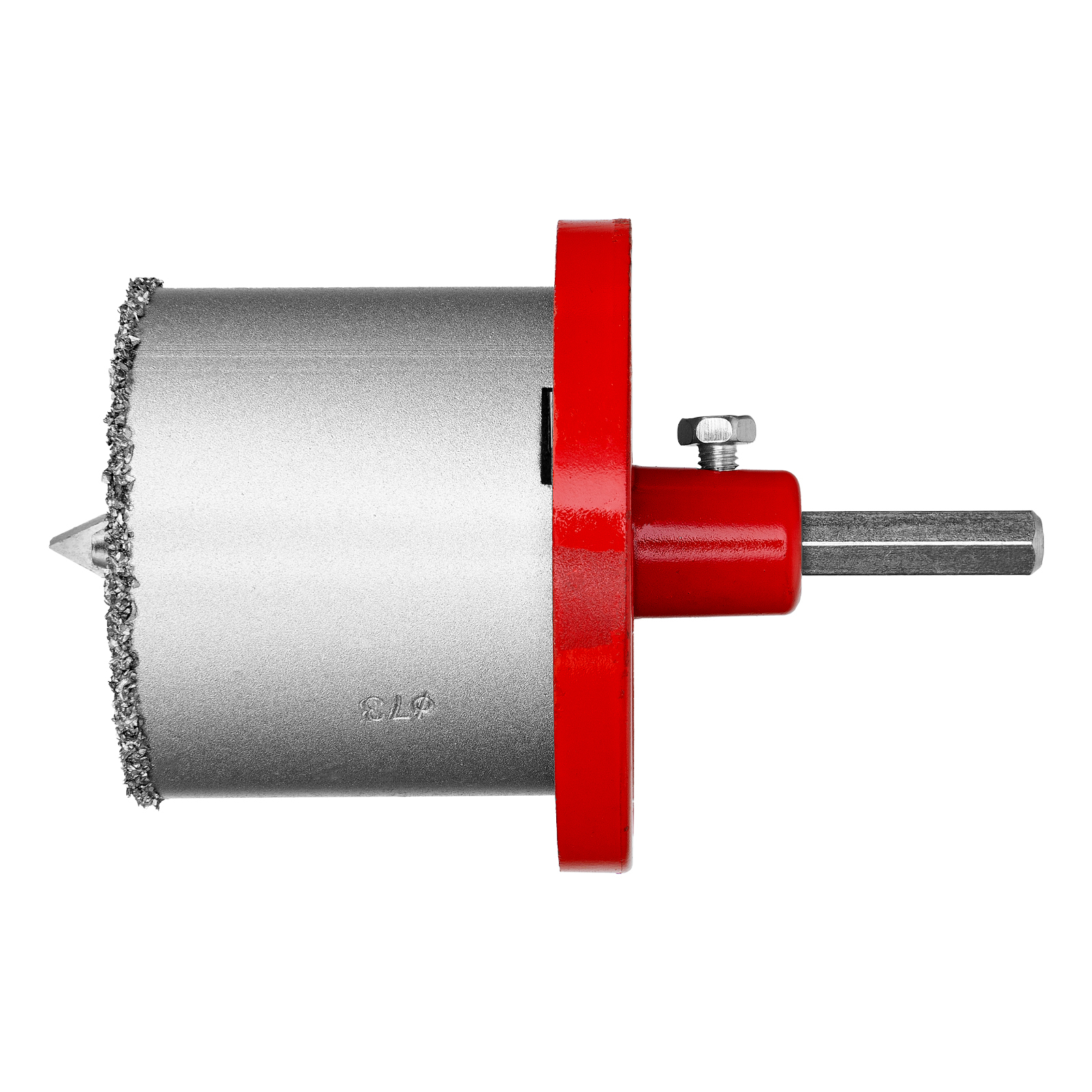 Набор коронок Matrix 72840 диаметром 33-53-67-73 мм, с 6-гранным хвостовиком, предназначен для сверления отверстий в керамической плитке с помощью дрелей и шуруповертов. Коронки эффективно справляются с керамической плиткой, кирпичом, газосиликатом, гипсокартоном, ячеистым бетоном и пенобетоном. Набор пригодится частному мастеру. Рекомендуется использовать водяное охлаждение и работать в безударном режиме для предотвращения поломки коронок.ПреимуществаУдобное использование — в комплект входит центрирующее (направляющее) сверло, облегчающее засверливание.Высокая прочность — рабочие части коронок и твердосплавная пластина центрирующего сверла изготовлены из сплава карбида вольфрама ВК6.Легкая подготовка к работе — универсальная державка позволяет быстро и надежно фиксировать коронки.Шестигранный хвостовик — сверло не прокручивается в патроне во время работы.Широкие возможности — в комплект входят коронки диаметром 33, 53, 67, 73 мм для сверления отверстий разного диаметра.