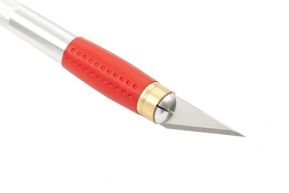 Нож Matrix 78855 с двухкомпонентной рукояткой и 5 запасными лезвиями, используется для дизайнерских работ: фигурного вырезания, изготовления мелких декоративных элементов. Он эффективно справляется с резкой бумаги и обоев, позволяя получить художественный результат.ПреимуществаЛезвие в форме пера выполнено из углеродистой стали 60, закалено и заточено, поэтому долго сохраняет остроту.Специальный защитный колпачок и выдвижное лезвие повышают безопасность транспортировки и эксплуатации.В комплекте с ножом идут 5 запасных лезвий, поэтому их не придется покупать дополнительно.Корпус выполнен из алюминия с нескользящей резиновой вставкой для удобства работы.