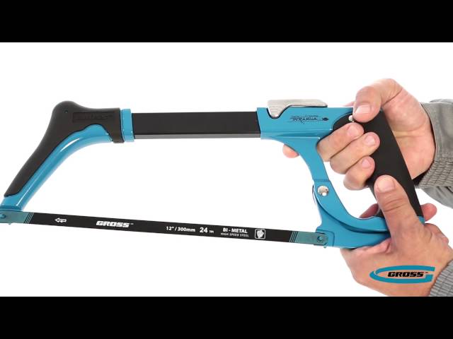 Ножовка по металлу Gross «PIRANHA» 77604 с лезвием длиной 300 мм и рычажным механизмом натяжения полотна подходит для профессиональных строительных и слесарных операций. Полотно можно установить под углом 45 и 90 градусов, благодаря чему возможен как поперечный, так и продольный рез заготовок.ПреимуществаВысокий ресурс — биметаллическое полотно с зубьями из быстрорежущей стали долго сохраняет рабочие свойства.Максимально аккуратный и чистый рез — степень натяжения полотна регулируется при помощи рычажного механизма.Эргономичность — обрезиненная рукоятка и удобный захват снижают нагрузку на руки мастера.