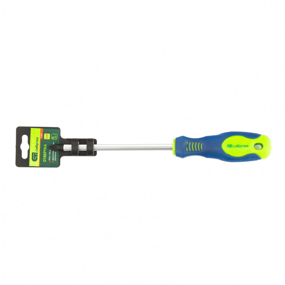 Отвертка Сибртех 11851, PH3 х 150 мм, из стали CrV, с 2-х компонентной рукояткой и крестовым шлицем позволяет проводить монтаж/демонтаж крепежных элементов типа Phillips. Она поможет произвести ремонт бытовой техники, повесить полки, собрать мебель и выполнить другие работы. Отвертка относится к полупрофессиональному классу инструментов. Благодаря стержню длиной 150 мм ей можно работать в углублениях и на поверхностях.ПреимуществаСтержень из хромованадиевой стали твердостью 50-54 HRC обладает высокими прочностными характеристиками.Фосфатированный наконечник стержня обеспечивает улучшенное сцепление со шлицем крепежа.Специальная маркировка, нанесенная на рукоятку, с обозначением типа шлица и длины стержня помогает быстро найти нужный инструмент.Удобная двухкомпонентная рукоятка имеет ромбовидные насечки и подпальцевые выемки для снижения нагрузки на запястье.