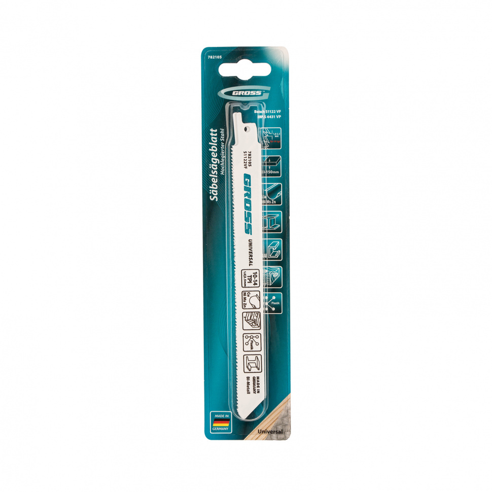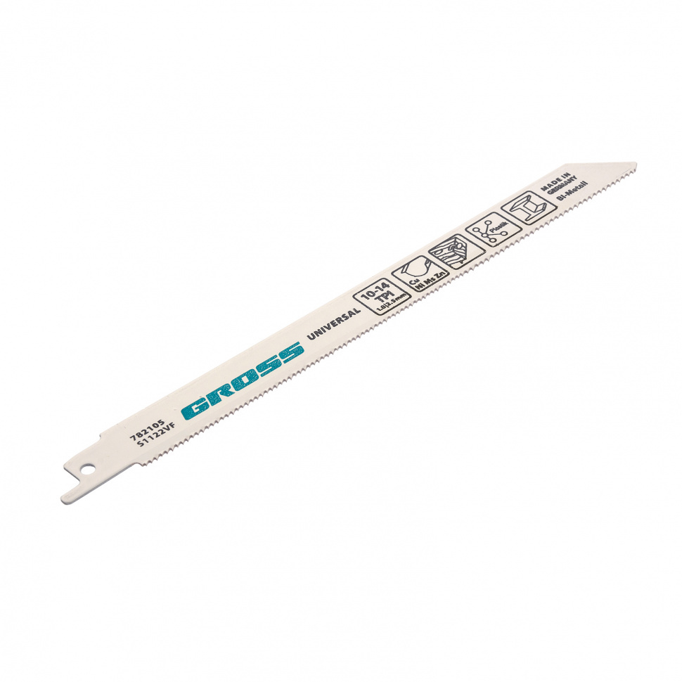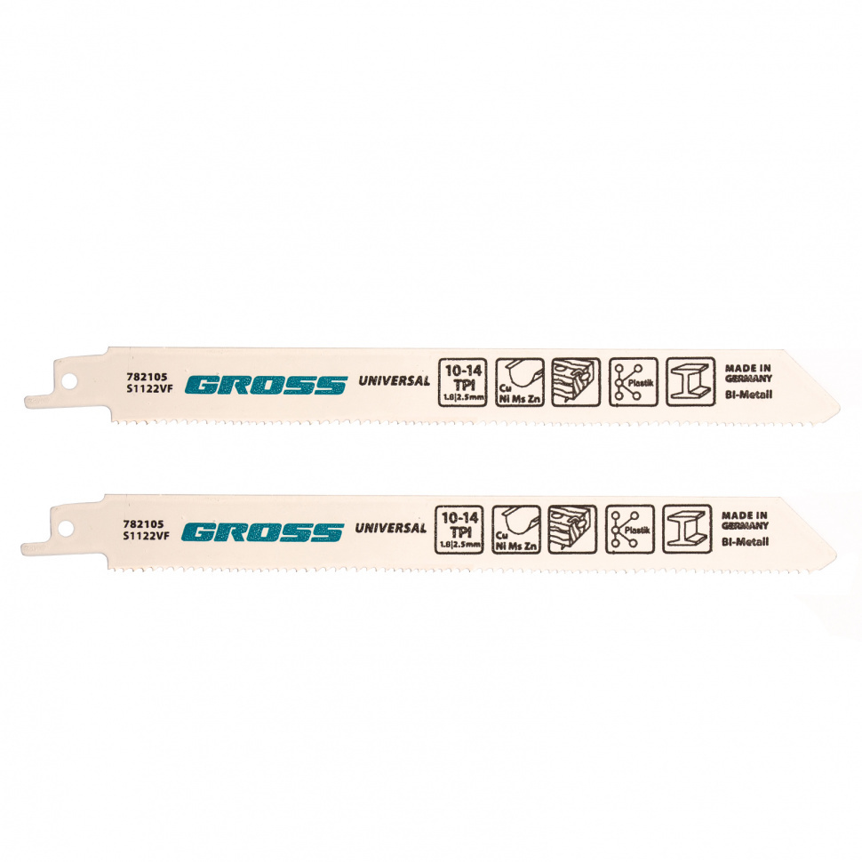 Полотна универсальные для сабельной пилы Gross 782105, 4431 VP - S1122VF, размером 180 x 1,8-2,5 мм, 2 шт., подходят для демонтажа конструкций, содержащих мелкие металлические детали: окон, мебели, перегородок, а также пригодятся при осуществлении ремонтных и строительных работ. Увеличенная длина 180 мм и шаг зубьев 1,8-2,5 мм позволяют выполнять распил любых материалов: древесины, ДСП и ламината толщиной 5-150 мм, металла 3-10 мм, пластика и оргстекла 3-150 мм. Они будут полезны для профессиональных мастеров.ПреимуществаПолотна выполнены из биметалла, поэтому обладают оптимальным соотношением гибкости, прочности и износостойкости.Производство находится в Германии, на каждом этапе изделия были проверены на качество и соответствие действующим стандартам.Переменный шаг зубьев 1,8 и 2,5 мм обеспечивает универсальность полотен, позволяя резать материалы любой толщины.Закаленные зубья обладают высокой режущей способностью даже при нагреве, поэтому полотна выдерживают высокие нагрузки.Комплекта из двух полотен хватит на долгое использование.
