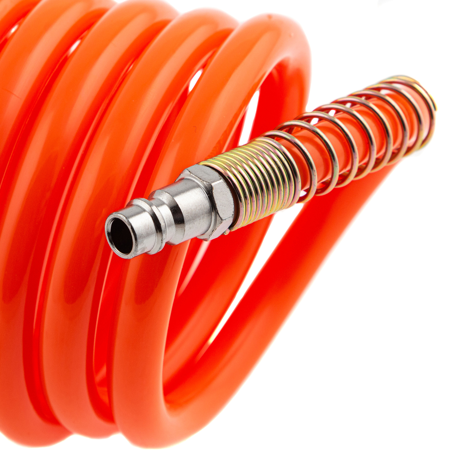 Спиральный воздушный шланг Stels 57019, 8 х 12 мм, длиной 15 м, с быстросъемными соединениями, выдерживает давление до 18 бар и предназначен для подключения пневматических инструментов к источнику сжатого воздуха. Полиэтилен, из которого изготовлен рукав, характеризуется легкостью и устойчивостью к воздействию агрессивных сред, поэтому шланг не боится контактов со строительными смесями, маслом, бензином, а работа с ним не вызывает усталости. Пригодится во время строительства, ремонтно-отделочных работ, а также будет полезен в мастерской или гараже.ПреимуществаСпиральная форма — шланг удобен в хранении, а во время работы не мешает передвижению.Длина 15 м — мастеру не обязательно располагаться рядом с компрессором.Быстросъемные соединения рапид — удобно для быстрого подключения рукава к компрессору и работы поочередно с несколькими пневмоинструментами.Антикоррозийное покрытие — штуцер и муфта устойчивы к ржавчине и служат долго.Увеличенная толщина — рукав выдерживает механические воздействия и перепады давления.