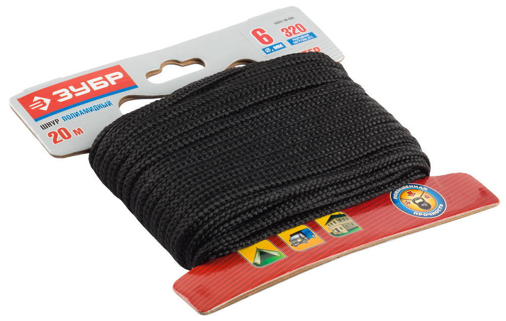 Шнур ЗУБР применяется в отраслях народного хозяйства, где предъявляются высокие требования к прочности и стойкости истиранию. Для оснастки небольших судов, в промышленном и любительском рыболовстве, строительной отрасли, преимущественно в операциях с неответственными грузами, при монтаже наружной рекламы, тентов, незаменим во многих видах активного отдыха: туристические походы, яхтинг, почти все виды водного спорта.