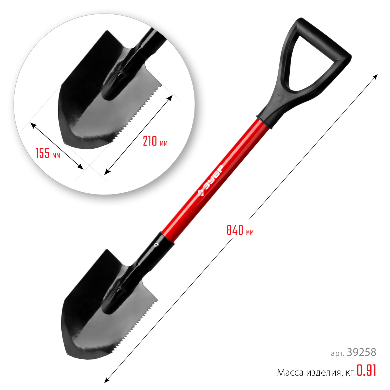 Надёжная автомобильная лопата со стальным черенком