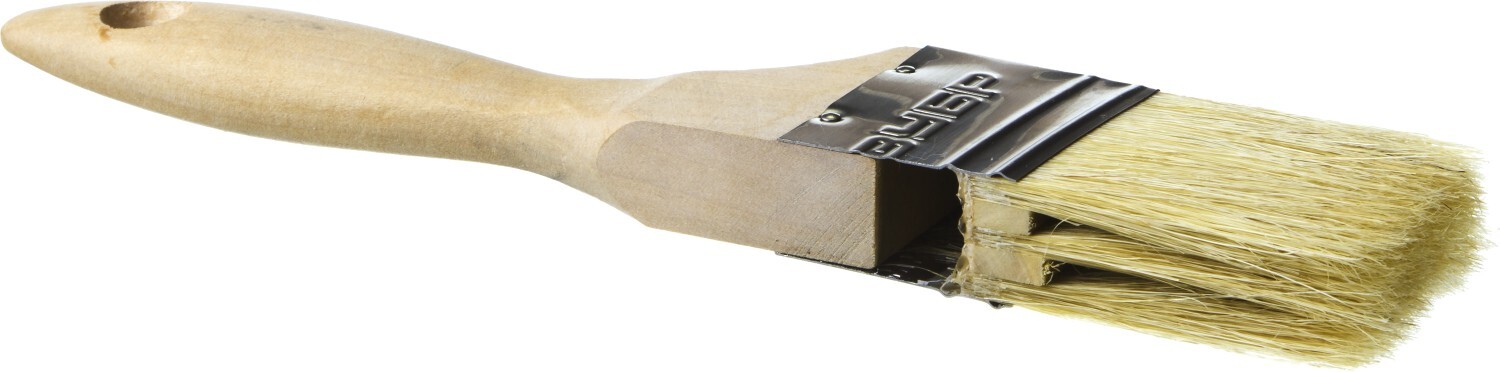 Натуральная щетина обеспечит оптимальное нанесение различных видов ЛКМ, щетина кисти надежно закреплена бандажом из нержавеющей стали, а наличие удобной деревянной рукоятки обеспечит комфортную работу